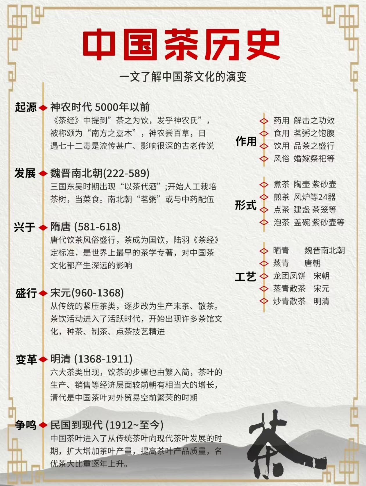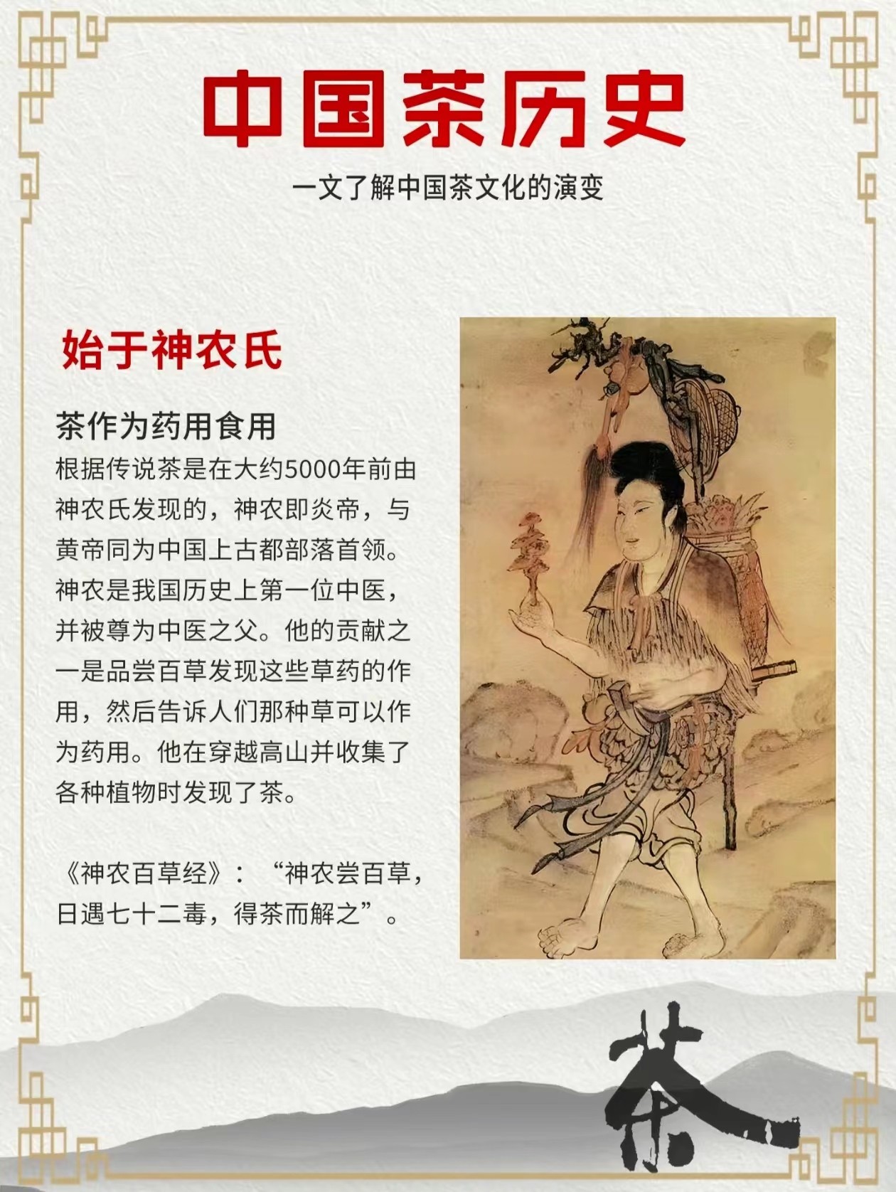 据史书记载,茶最早出现在中国的西南地区,如四川、云南等地。在古代,茶最初被当作一种药物使用,随着时间的推移,人们逐渐发现了茶的独特风味和香气,开始将其作为饮品饮用。唐朝时期,茶文化开始兴起,并逐渐成为了中国传统文化中的重要组成部分。 “茶之为饮,发乎神农氏”--《茶经》 “罗细则茶浮,粗则水浮”---《茶录》
